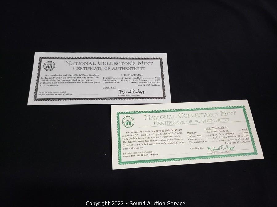 Lot #0019: 2002 2$ Silver & Gold Certificates w/CoA's