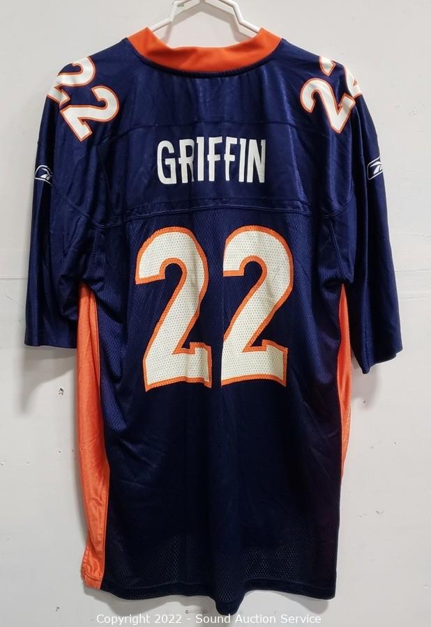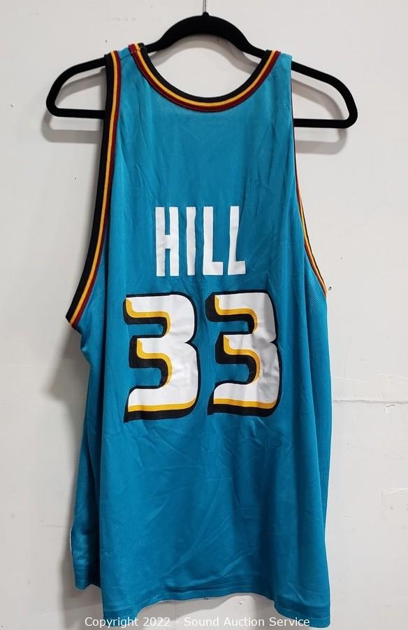 Lot Details: (2) Pistons 33 "Hill", Broncos 26 "Portis" and 22 "Griffin". All approx. size large.