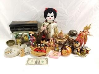 Lot #0235: Assorted Asian Collectibles, Dolls, Decor