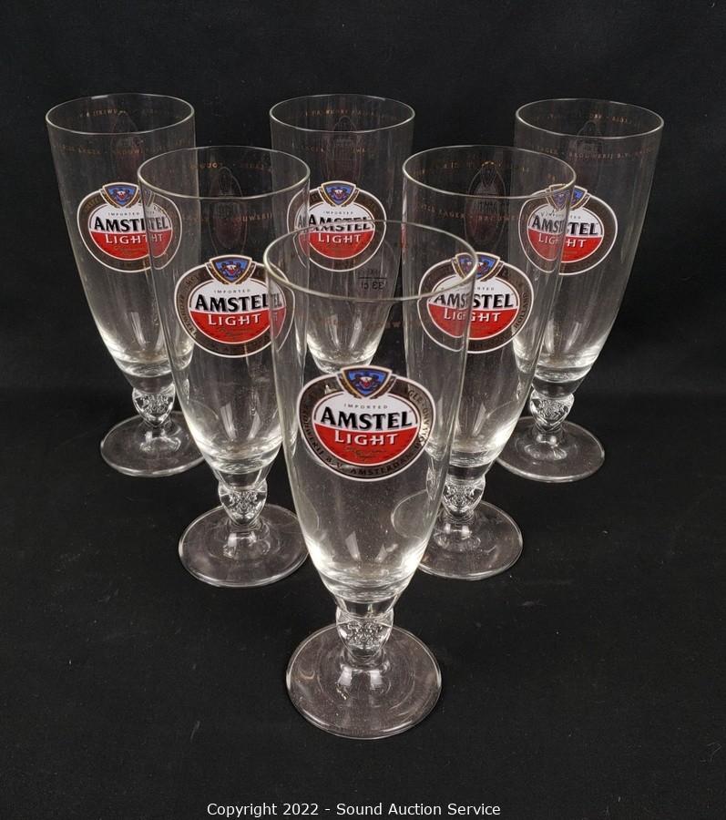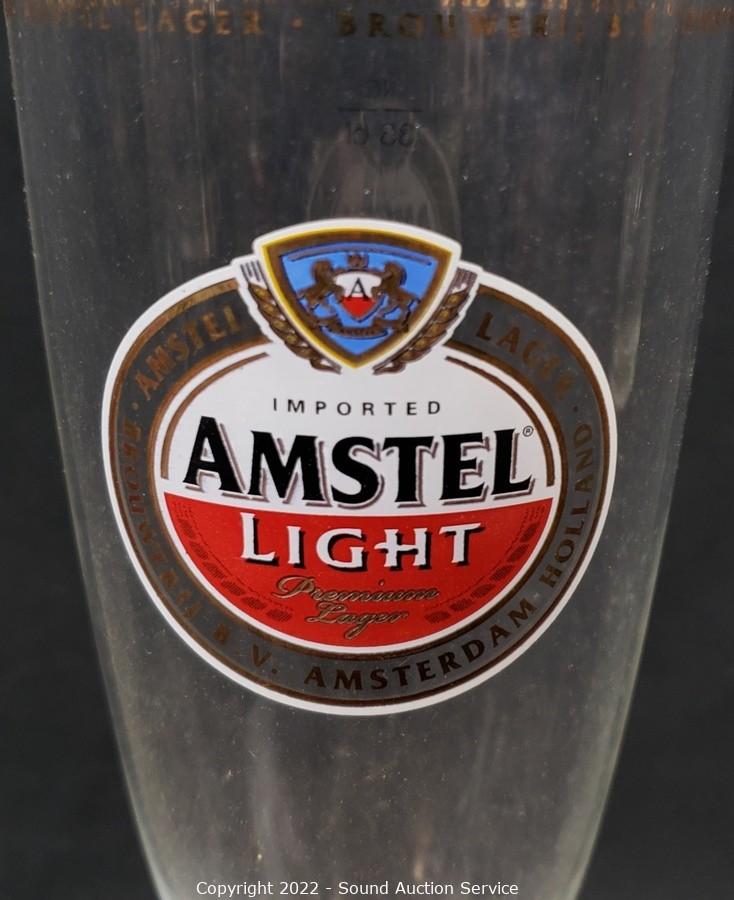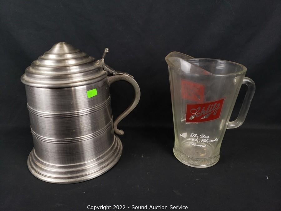 Lot Details: 6 Amstel Light tumblers, Schlitz pitcher, Lg. 10" stein, 16" x 26".