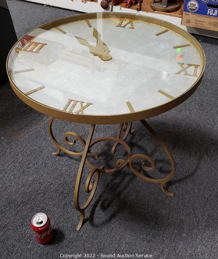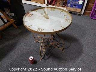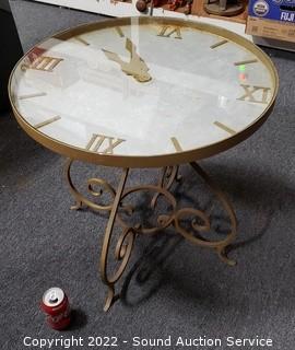 Lot #0044: Unique Wrought Iron Glass Top Clock Dial Table