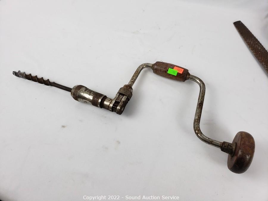 Lot #0186: Vises, Hand Grinder, Brace Drill & Rasp