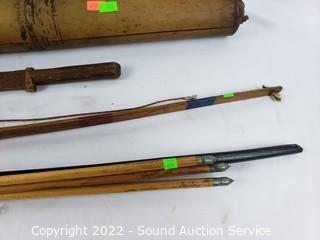 402 Lots including; Beautiful Cherry 4pc Wood Entertainment Center, Nice 16ft Wood Kayak w/4 Paddles, Rotary Heavy Duty Pneumatic Vehicle Lift, Crap Traps, Cubby Shelves, Walker, Wheelchair, Assorted power & Hand Tools, Vtg. CF Martin & Co 4-String Ukulele, Leatherman Multi-Tools, Vtg. Charlet Moser Super Conta Ice Axe, Vtg/Antique Keufell & Esser Co. Surveyor's Transit, Vtg. Leupold & Stevens Sextant w/Case, Various Music Instruments, Vtg. Streetcar Tokens, Vtg. WWI & WWII Military Photos & Ephemera, Cavalry Sword w/Sheathe, JBL Spear Gun, Assorted Geodes, Collectible Stones, Vtg. 1942 U.S.Navy Schick Stadimeter, Nikon Cameras, Vtg. Sewing Machines, Camping Equipment, Diecast Collectible Cars, 50pc Noritake Primastone Campobello Stoneware, Chainsaws, Thorens TO166 MKII Turntable, Heavy Duty Gas Trailer Mount Cement Mixer, Outboard Motors, & So Much More!!!