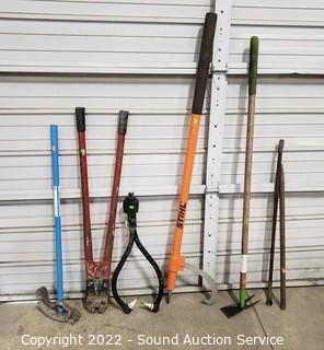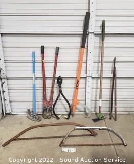 Lot #0255: 9pc Logging, Heavy Duty & Lawn Tools