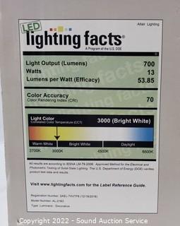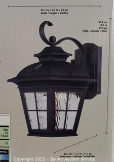 Lot Details: Brushed patina finish with clear water glass. 13w, 3000k color, 700lm. 15.7" H x 9.1" W x 11.7" D. Works, complete.