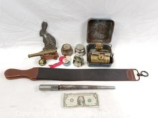 402 Lots including; Beautiful Cherry 4pc Wood Entertainment Center, Nice 16ft Wood Kayak w/4 Paddles, Rotary Heavy Duty Pneumatic Vehicle Lift, Crap Traps, Cubby Shelves, Walker, Wheelchair, Assorted power & Hand Tools, Vtg. CF Martin & Co 4-String Ukulele, Leatherman Multi-Tools, Vtg. Charlet Moser Super Conta Ice Axe, Vtg/Antique Keufell & Esser Co. Surveyor's Transit, Vtg. Leupold & Stevens Sextant w/Case, Various Music Instruments, Vtg. Streetcar Tokens, Vtg. WWI & WWII Military Photos & Ephemera, Cavalry Sword w/Sheathe, JBL Spear Gun, Assorted Geodes, Collectible Stones, Vtg. 1942 U.S.Navy Schick Stadimeter, Nikon Cameras, Vtg. Sewing Machines, Camping Equipment, Diecast Collectible Cars, 50pc Noritake Primastone Campobello Stoneware, Chainsaws, Thorens TO166 MKII Turntable, Heavy Duty Gas Trailer Mount Cement Mixer, Outboard Motors, & So Much More!!!