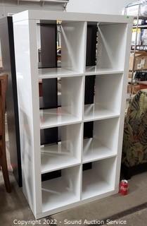 Lot #0011: Modern White Laminate 8 Cubby Shelving Unit