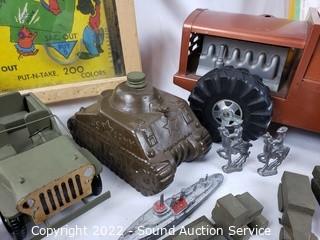 402 Lots including; Beautiful Cherry 4pc Wood Entertainment Center, Nice 16ft Wood Kayak w/4 Paddles, Rotary Heavy Duty Pneumatic Vehicle Lift, Crap Traps, Cubby Shelves, Walker, Wheelchair, Assorted power & Hand Tools, Vtg. CF Martin & Co 4-String Ukulele, Leatherman Multi-Tools, Vtg. Charlet Moser Super Conta Ice Axe, Vtg/Antique Keufell & Esser Co. Surveyor's Transit, Vtg. Leupold & Stevens Sextant w/Case, Various Music Instruments, Vtg. Streetcar Tokens, Vtg. WWI & WWII Military Photos & Ephemera, Cavalry Sword w/Sheathe, JBL Spear Gun, Assorted Geodes, Collectible Stones, Vtg. 1942 U.S.Navy Schick Stadimeter, Nikon Cameras, Vtg. Sewing Machines, Camping Equipment, Diecast Collectible Cars, 50pc Noritake Primastone Campobello Stoneware, Chainsaws, Thorens TO166 MKII Turntable, Heavy Duty Gas Trailer Mount Cement Mixer, Outboard Motors, & So Much More!!!