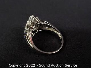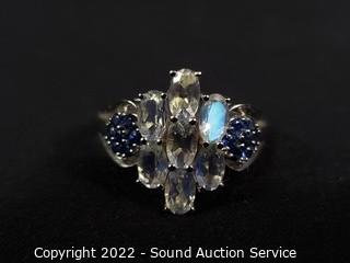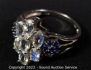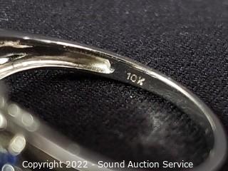 Lot #0268: 10k White Gold Aquamarine & Sapphire Ring S:7