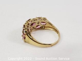 Lot #0271: 10k Yellow Gold Diamond & Amethyst Ring - S: 7