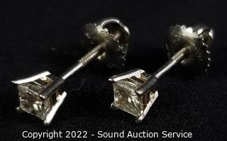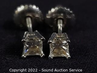 Lot #0303: 14k White Gold Diamond Stud Earrings