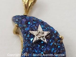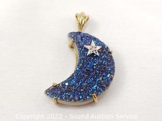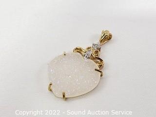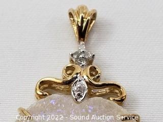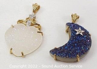 Lot #0276: (2) 10k Gold, Quartz Stone & Diamond Pendants