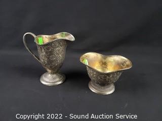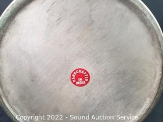 Lot Details: Crumb tray, cream, sugar, handcrafted India canister, 12" center bowl.