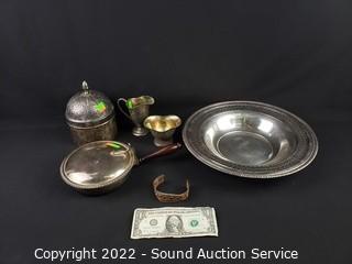 Lot #0106: 5pc Silver Plate Decor & Bracelet
