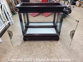Lot Details: No shelf, missing top glass insert. 32" H x 34.5" x 14.5".