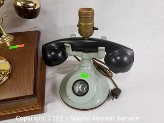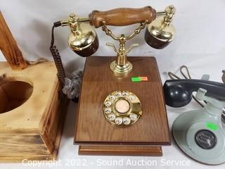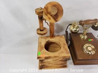 Lot #0241: Telephone Lamp, Wood Planter & Rotary Dial Phone