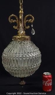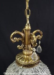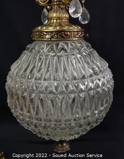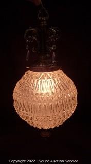 Lot #0157: Vtg. Clear Pressed Glass Hanging Swag Lamp