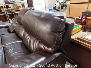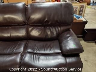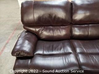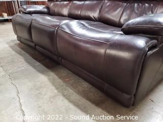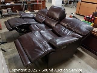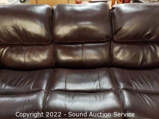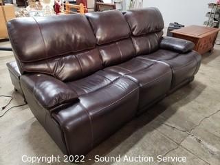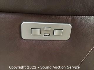 Lot #0004: Simon Li Brown Power Reclining Leather Sofa