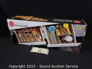 Lot #0343: 10pc Bamboo Organizing Boxes