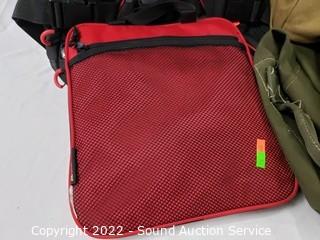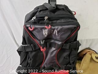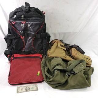 Lot Details: Military duffel, NRA athletic bag, rolling backpack, & packable bag.