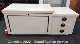 430 Lots including; Furniture, Unique Elephant Base Glass Top Table w/6 Chairs, Queen Adjustable Bed Base, Curio & Display Cases, Vtg. Oak 3-Drawer Vanity Dresser, Vtg. Oak 4-Tier Lawyer's Bookcase, Wood & Cast Iron Outdoor Bench, Geisha Dolls, Unique Table Lamps, Swarovski Crystal Sculptures, Patio Tables & Chairs, WhiteGate Workshop Table/Bench, 1956 White Painted Lane Cedar Chest, Steel Utility Racks, WWII A-10A Sextant w/Case, Vtg. Coal Irons, iPhone 5S, iPod, Elkhart "The Martin" Silver Plate Saxophone, Vtg. Steel banded Keg's/Barrels, Vtg. Record Albums, Petite 14k Gold Necklaces & Bracelets, Mid-Century Lane Cedar Chest, Vtg. Record Albums & Much More!!!