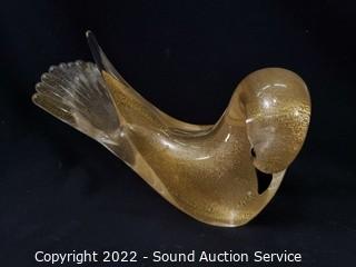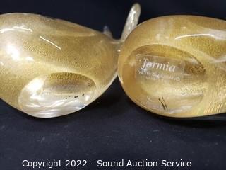 Lot #0334: 2 Formia Italian Art Glass Gold Flake Bird Figures
