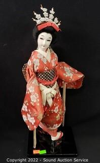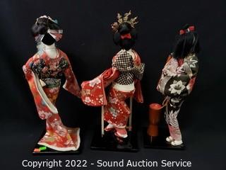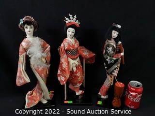 Lot #0142: 3 Handcrafted Silk Geisha Dolls w/Stands
