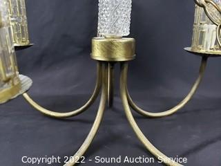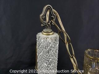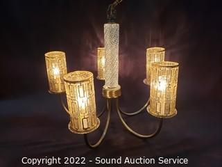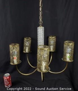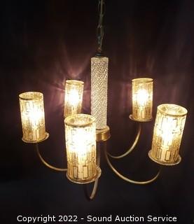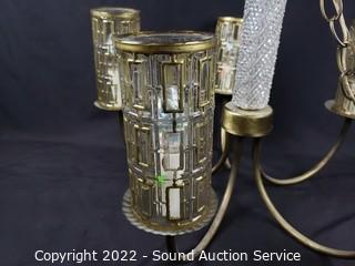 Lot #0215: 5 Light Brass & Crystal Finish Hanging Lamp