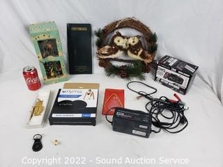 Lot Details: Battery charger, tree decor, jewelry & more. Refer to photos for lot contents.
