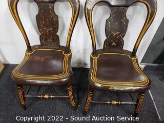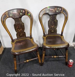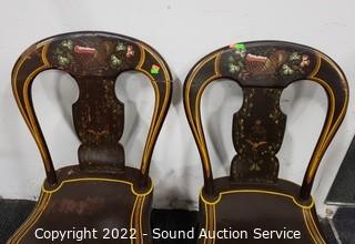 Lot #0019: Pair of Hand Painted Wood Accent Chairs