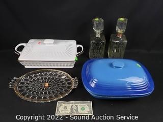 Lot #0368: 2 Roasters Servers, Platter & 2 Decanters