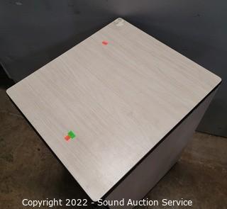 Lot Details: 24" H x 12.5" x 14.5" & 28" H x 16.5" x 18.5". Sticker residue on cabinet, laminate finish .