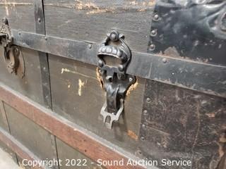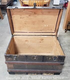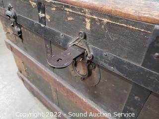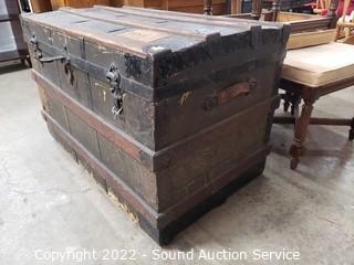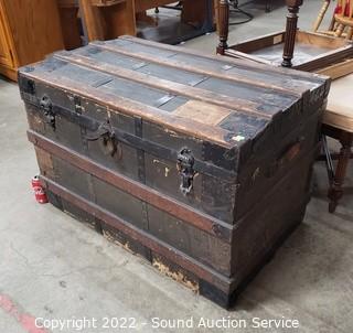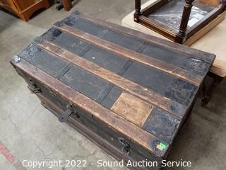Lot #0304: Antique Wood Banded Steamer Trunk
