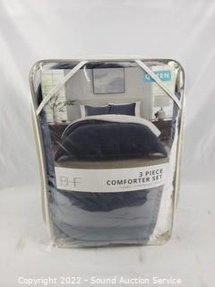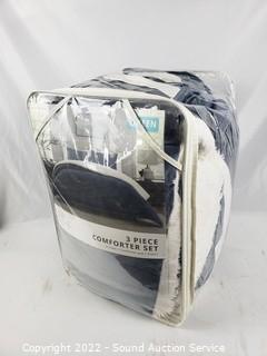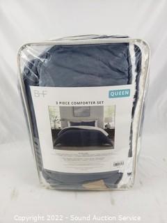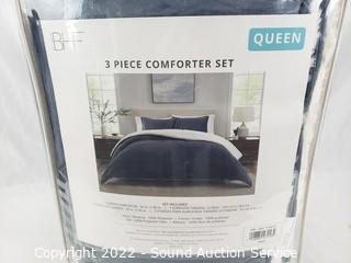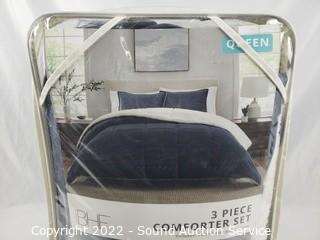 Lot #0328: BHF Navy 3pc Queen Plush Sherpa Comforter Set
