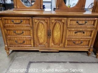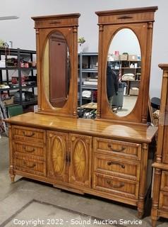 Lot #0002: Pecan? Finish Dual Vanity 9-Drawer Dresser