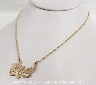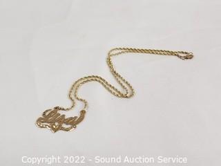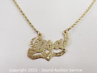 Lot Details: Pendant reads "Lisa", couldn't find a jewelry mark, held strong on 14k acid test. Chain marked 10k. TW:5.9g.