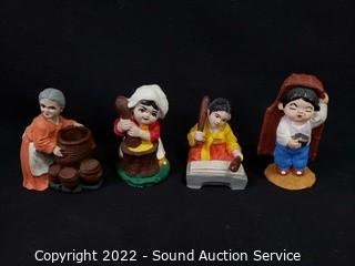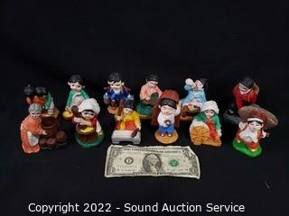 Lot #0313: 12 Hand Painted Pottery Asian Figures