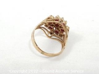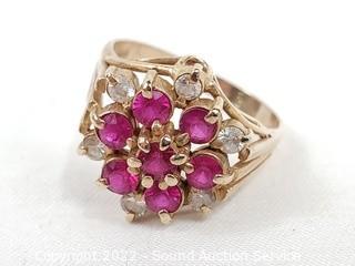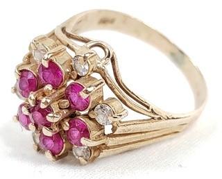Lot Details: Marked "500" on inside of band. Held on 10k acid test, faded but stayed on14k test. All red stones tested ruby, all white stones tested goshenite. TW:3g.