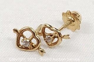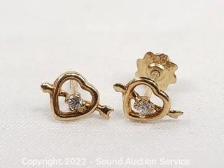 Lot #0090: 14k Gold & White Stone Stud Earrings