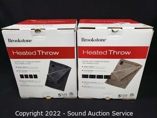 Lot #0307: 2 Brookstone 50" x 60" Heated Plush Throws