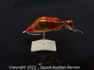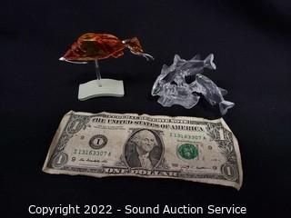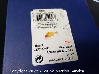Lot Details: Fire-Opal Crotone Tropical Fish 3.25" x 1.25", with $210 price tag, and 3 fish sculpture 3" x 1.75". Made in Austria, no issues. Come in original packaging & certificates.