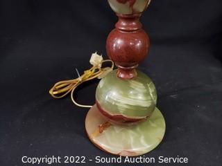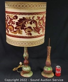Lot #0355: 2 Vintage Jade Marble Base Table Lamps