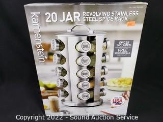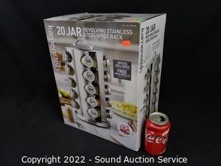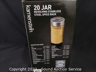 Lot #0312: 20 Jar Revolving Stainless Steel Spice Rack
