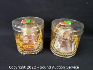 Lot Details: Figure is musical 7" H, holds a candle. Plates are 1st, 2nd & 3rd edition 10" dia, Hummel Bell ornaments.