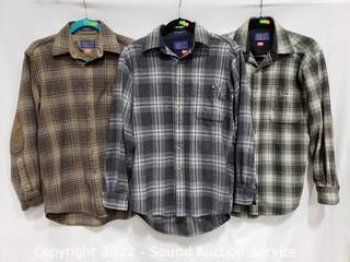 Lot #0194: 3 Pendleton Virgin Wool Flannel Button Up Shirts