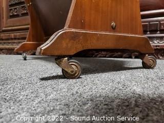 Lot Details: 2 Side tables 22" H x 23.75" x 23.75" & magazine table 23" H x 21.5" x 11.5". Magazine table has casters, some minor wear to finish mainly on the wood edges.