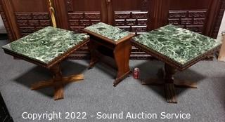 Lot #0022: 3pc Ornate Marble Top Living Room Table Set