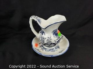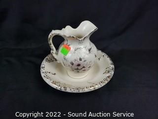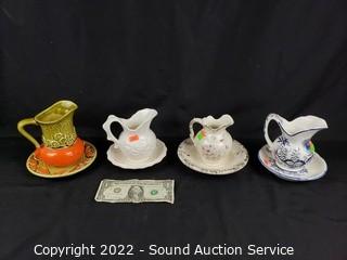 Lot #0378: 4 Vtg. Ceramic/Pottery Pitchers & Basins