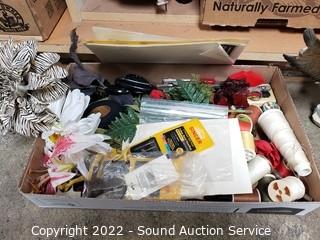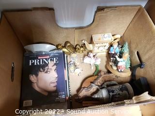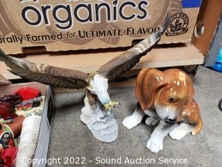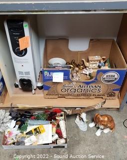 Lot Details: Ceramic figures (eagle has some damage), sewing thread, scissors, radiant heater (untested, cord needs replaced) & much more.