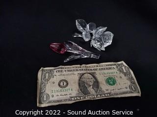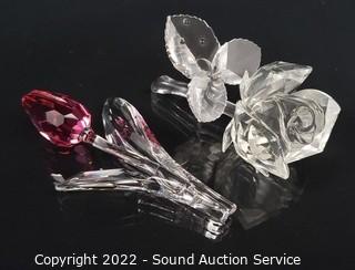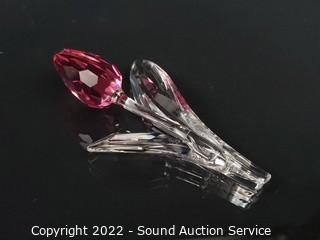 Lot #0063: Swarovski Crystal Pink Tulip & Rose Sculptures
